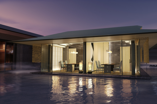『サンクチュアリコート日光 ジャパニーズモダンリゾート』は、日光の荘厳な自然を活かしながら、気品ある優雅な「和」をモダンに昇華させたリゾートです。敷地前の鬼怒川と繋がるかのような流水景の主庭が、時の移ろいとともに幻想的に変化し、優雅な非日常の空間を演出します。
