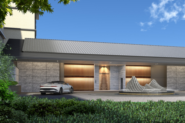 『サンクチュアリコート日光 ジャパニーズモダンリゾート』は、日光の荘厳な自然を活かしながら、気品ある優雅な「和」をモダンに昇華させたリゾートです。敷地前の鬼怒川と繋がるかのような流水景の主庭が、時の移ろいとともに幻想的に変化し、優雅な非日常の空間を演出します。