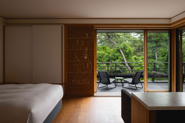 どこまでもシンプルで、どことなく邸宅を思わせる温かみのある空間と目の前に広がる庭園は、この場所にしかない時間の流れを生み出します。