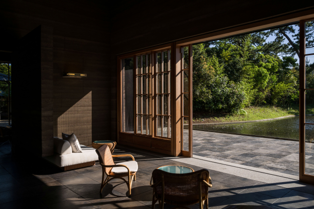 どこまでもシンプルで、どことなく邸宅を思わせる温かみのある空間と目の前に広がる庭園は、この場所にしかない時間の流れを生み出します。