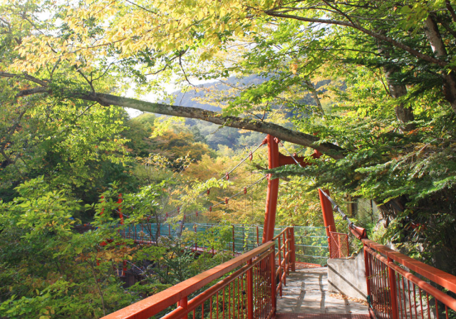 蔵には、鬼怒川にかかる吊り橋があり、橋を渡った先にも露天風呂がございます。