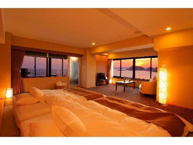 美しい夕陽を眺めて寛げる露天風呂付き客室