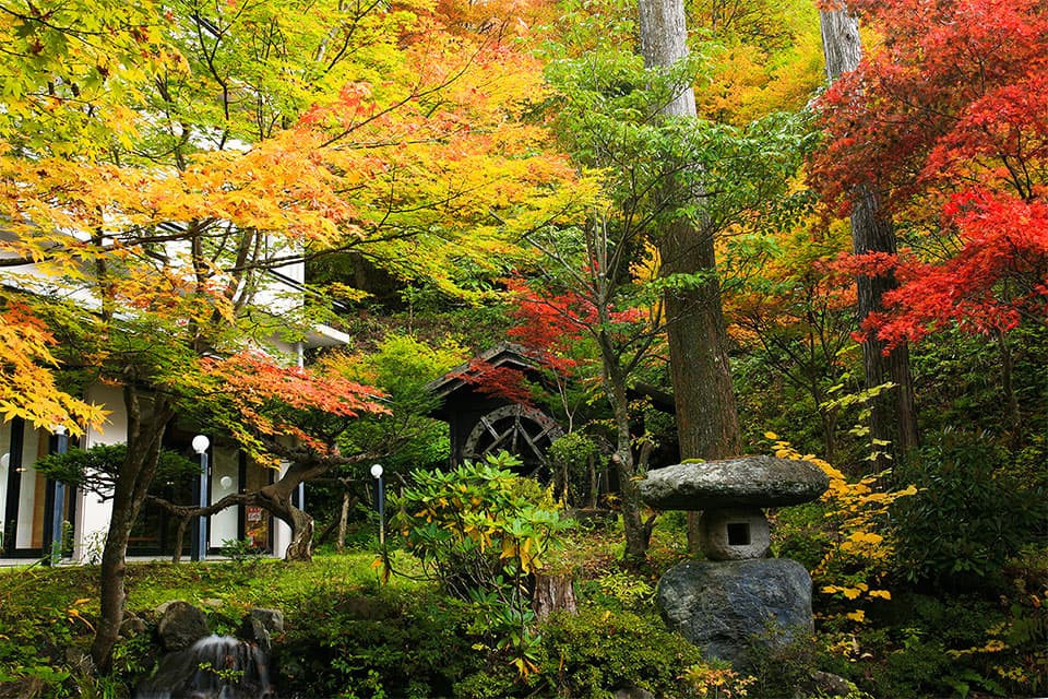 木曽山脈の懐に抱かれたその場所は、新緑や紅葉美しく、夏の暑さはおだやか、冬の雪景色も格別、自慢の自家源泉とともにはるか昔から旅人のこころと身体を優しく癒してきました。