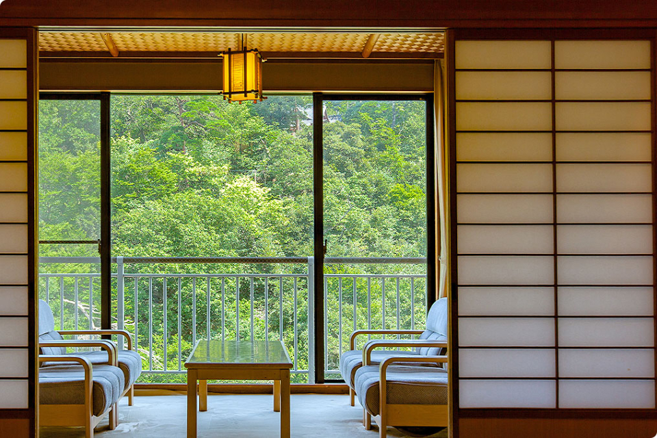 鶴仙渓の山水美には、しっとりとした雰囲気が漂う。芭蕉も愛した柔らかな温泉。街には湯けむりがほのかに薫り、磨かれ続けた伝統の感性が宿る。