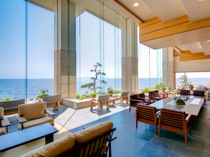 総勢16もの大浴場などから見る圧巻の大海原、金目鯛などボリューム満点のお部屋食、