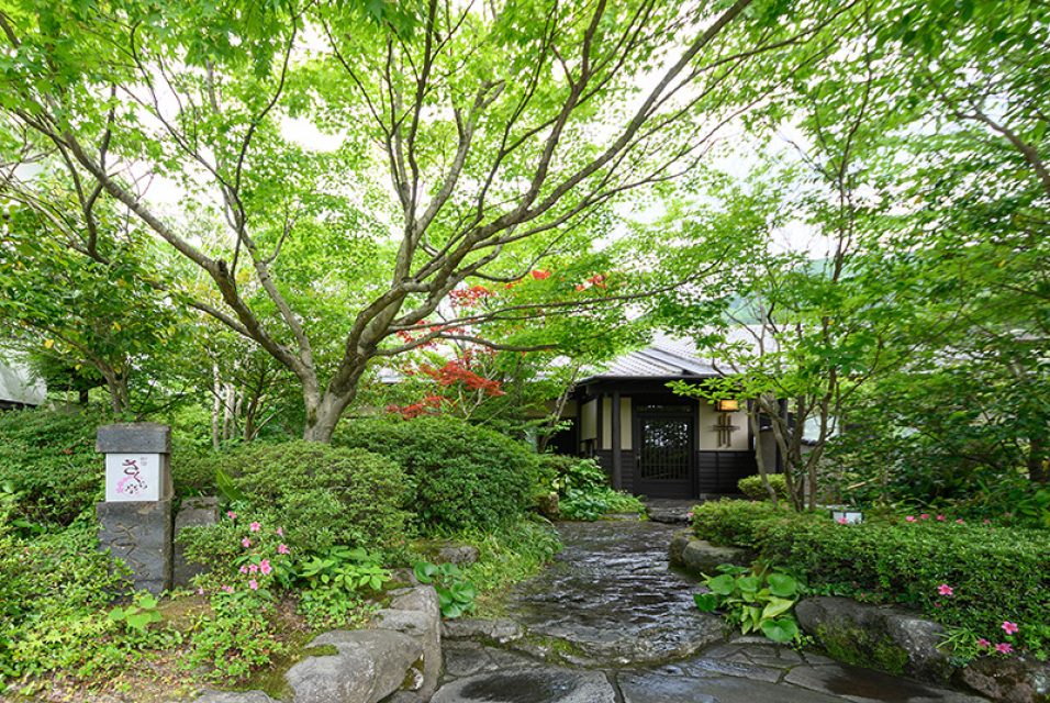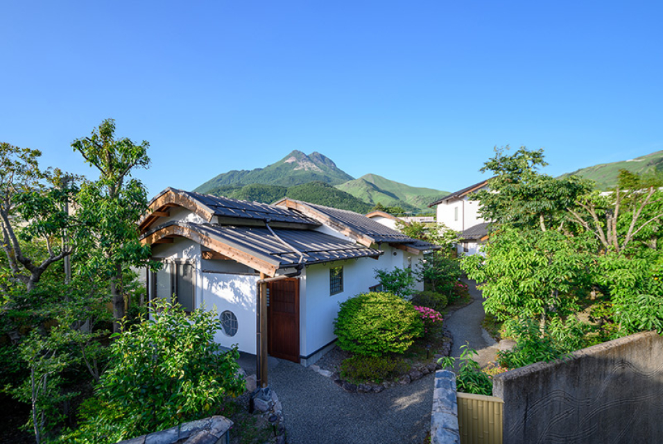 大分県・湯布院にある全10棟、源泉かけ流し「全室露天風呂付き離れ宿 御宿 さくら亭」。日常を忘れ、静かに流れる時間に贅沢で優雅なひと時を感じる大人の空間を提供しています。お食事は地元の産物から最良の物を選び、四季折々の旬が凝縮された品々をご提供しています。