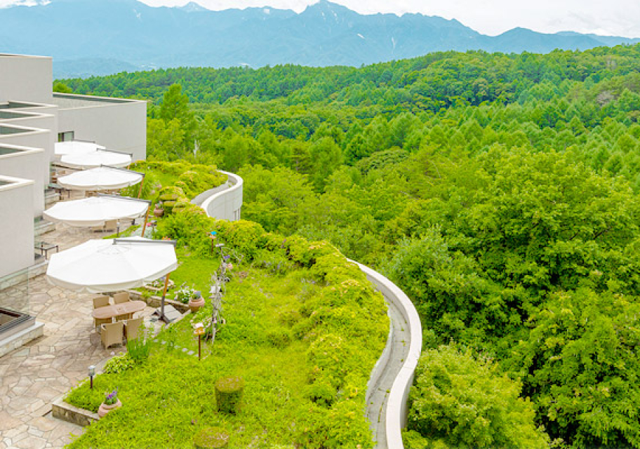 南アルプスや八ケ岳の山々に抱かれた標高1200mの高原リゾートホテル