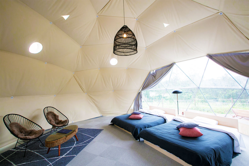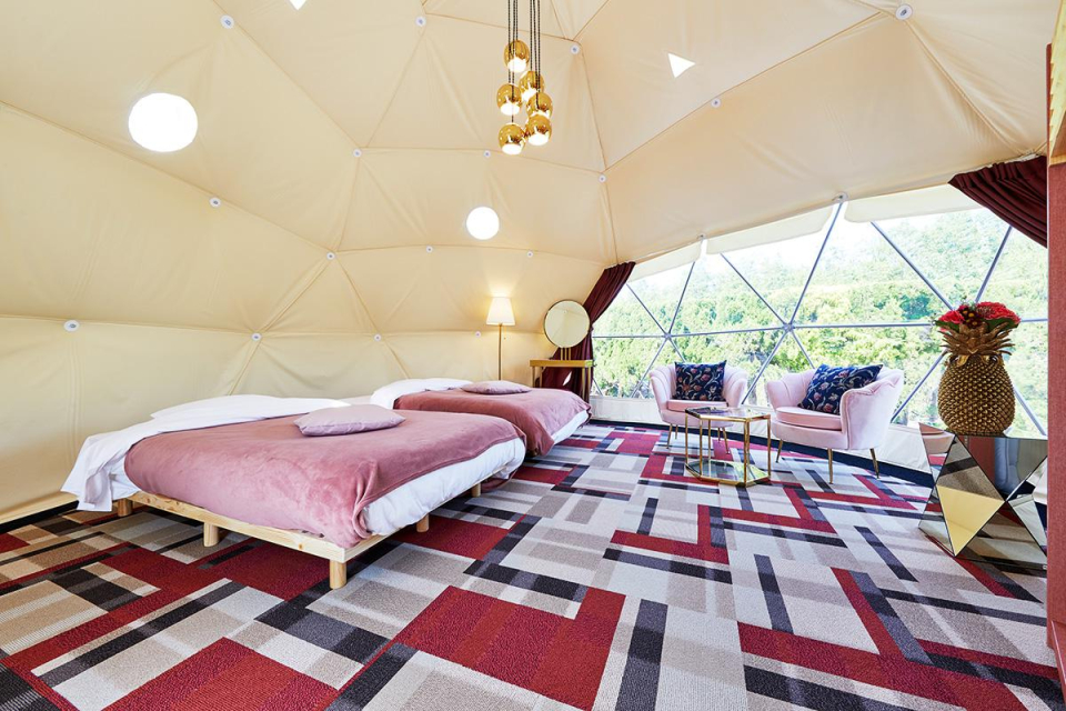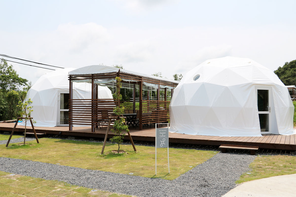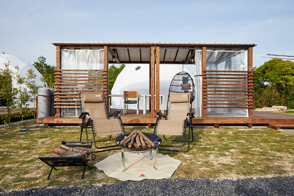 リゾートホテルなどが立ち並ぶ伊勢賢島エリアに位置する大型のドームテントを配置したグランピング施設