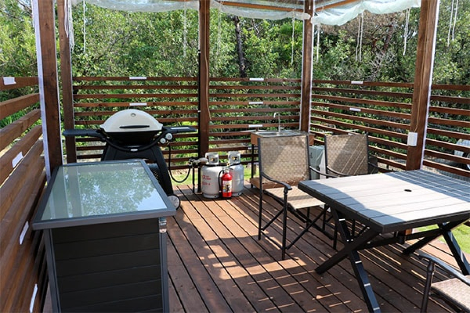 当施設では、冷暖房完備のドームテントをご用意しています。専用のBBQコーナーもあり、お客様に楽しく快適にお過ごし頂ける環境が整っています。