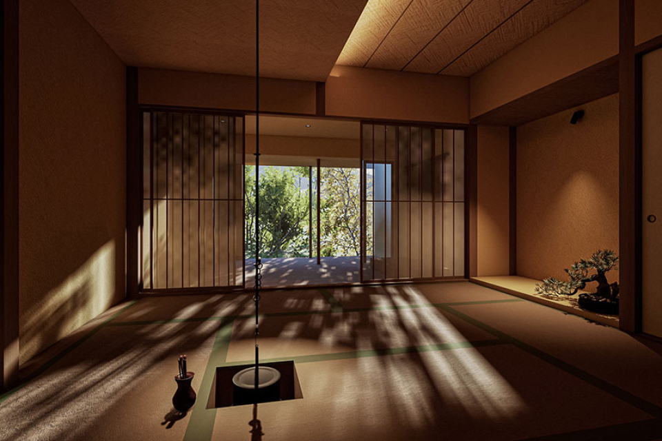 3階に専用茶室付き客室がございます。お食事を茶事(茶懐石)にてご用意することも可能です。外国人ゲストとのご旅行やご接待におすすめです。