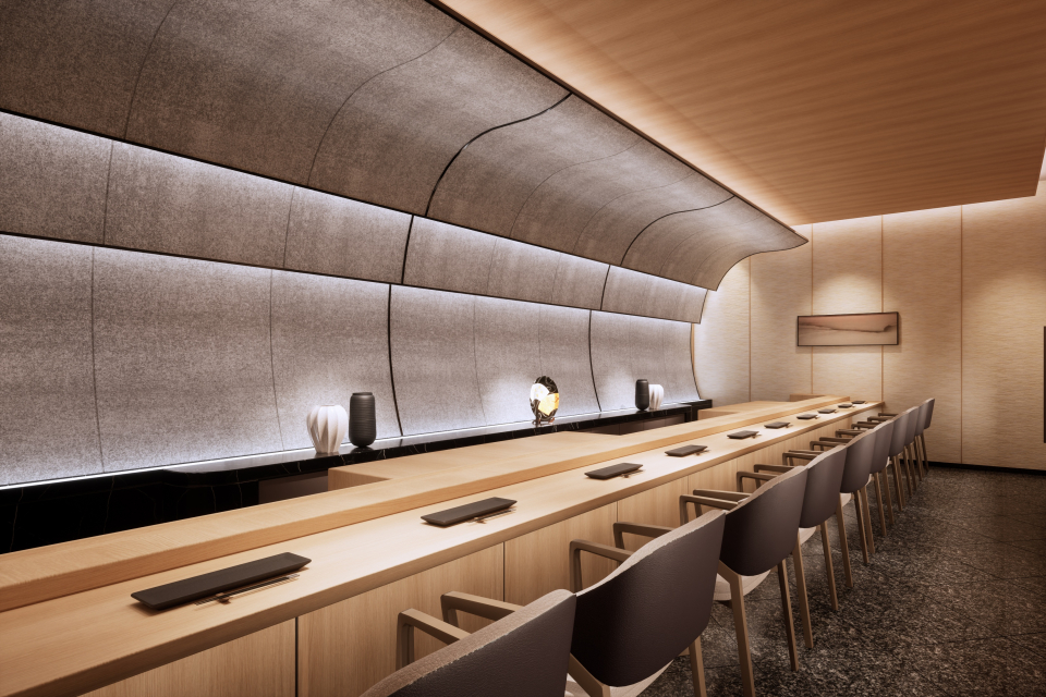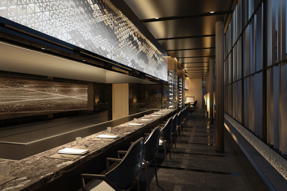お食事は、本格的な和の美意識と意匠を現代的なスタイルに昇華させた日本料理レストラン、山の稜線や水の流れをモチーフにしたアートワークとスクリーンを随所に配した中国料理レストランでのご案内。日本料理レストランでは、鉄板焼、寿司カウンター、天ぷらカウンターを備えています。