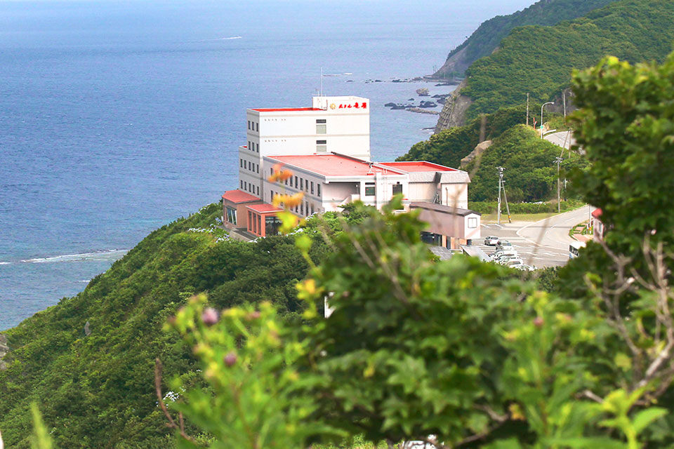 津軽半島・最北端の宿『龍飛崎温泉 ホテル竜飛』。目の前に津軽海峡が広がるロケーションが自慢です。