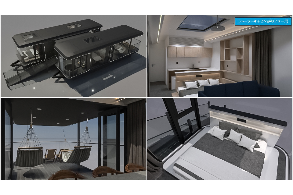 □最先端のキャビン型トレーラーハウスと透明ドーム型テントの宿泊施設を用意中