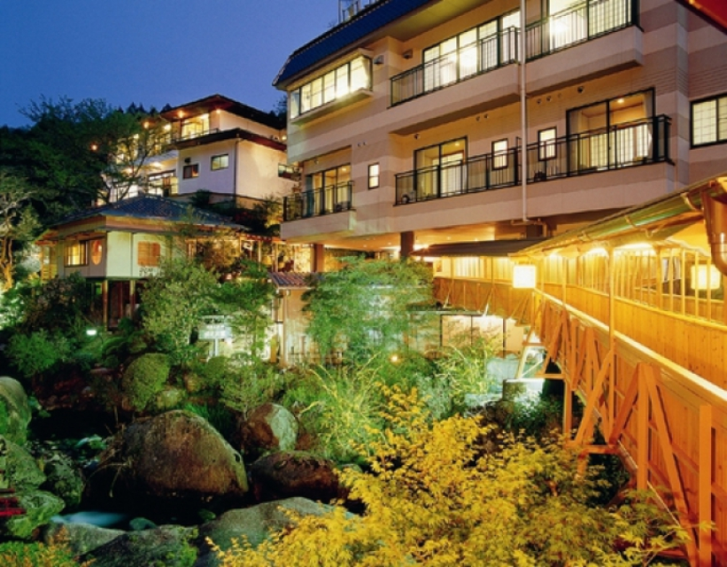 5000坪の敷地内を流れる清流可児川沿いに建つ、森に囲まれた癒しの宿。露天風呂付き客室に創作和食、岩盤浴やエステ、オープンカフェで極上のひとときを過ごす。