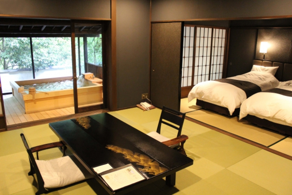 1階客室に温泉露天風呂を新設し、日本伝統の旅館のよさを残しつつ