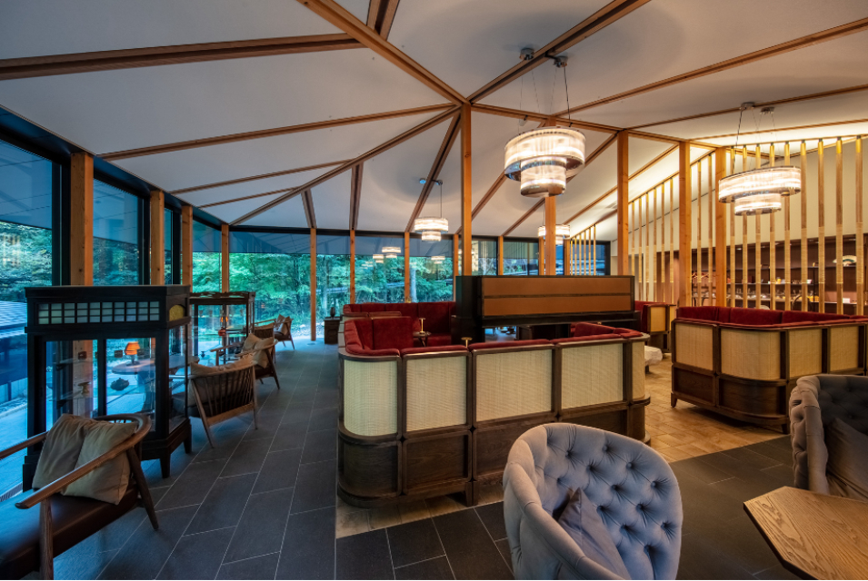 大正天皇の夏の御用邸であった地を公園として整備した日光田母沢御用邸記念公園。ふふ 日光は公園に面した由緒ある土地に誕生しました。花頭窓が特徴の優雅でモダンな客室は、大谷石や杉材、日光松を使用し、ファブリックもカラートーンも全て異なるデザインにしつらえています。お部屋の自家源泉のやわらかい温泉と、日本料理や鉄板焼きに日光と和と洋を掛け合わせたお料理で、非日常の癒しの時間を提供しています。