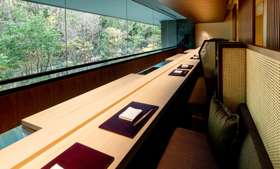 “鮨割烹 海の悠波”では、五感で味わうふふの日本料理と熱海の地を贅沢に堪能する鮨とを掛け合わせ、