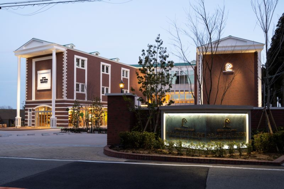 本館は全敷地面積 約2,300坪の鉄筋コンクリート造 地上3階 地下1階建ての、外壁には港町神戸をイメージしたレンガ調のモダンな外観が特徴。