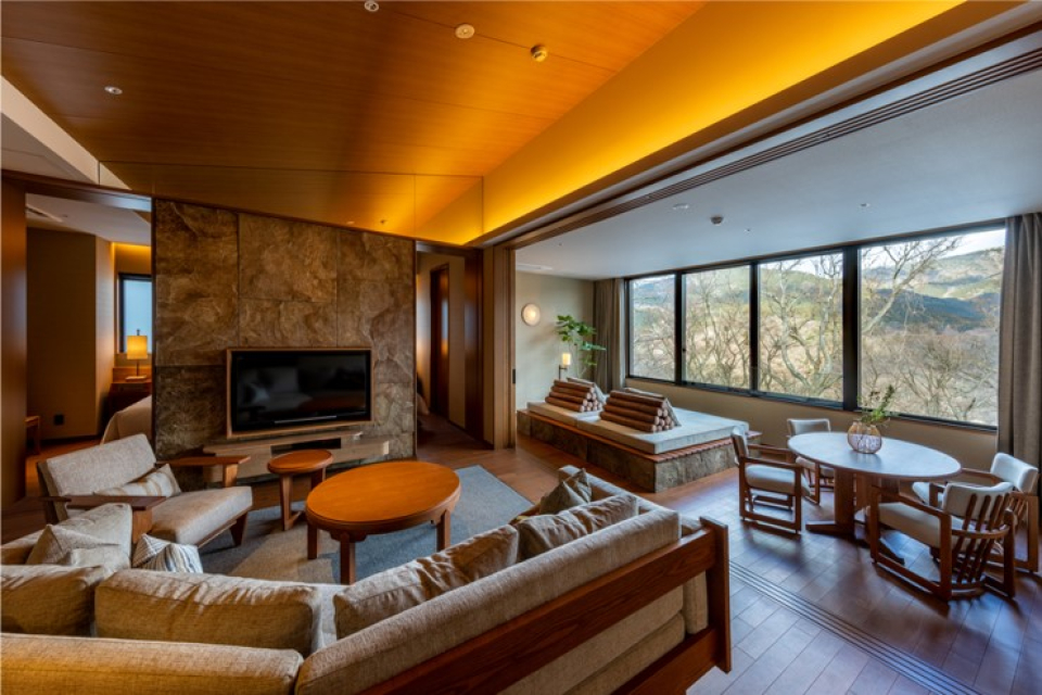 パノラミックに広がる箱根連山を目の前に、大自然の中に佇む山のリゾートとして誕生いたしました。プリフィックススタイルで愉しむお食事と、全39室の客室露天風呂と大浴場にひいた温泉、自然の光とリンクした日本を感じる穏やかな空間の中に、箱根らしい力強い岩と草花が深みを演出し、大自然の中にいるようなラグジュアリーリゾートです。
